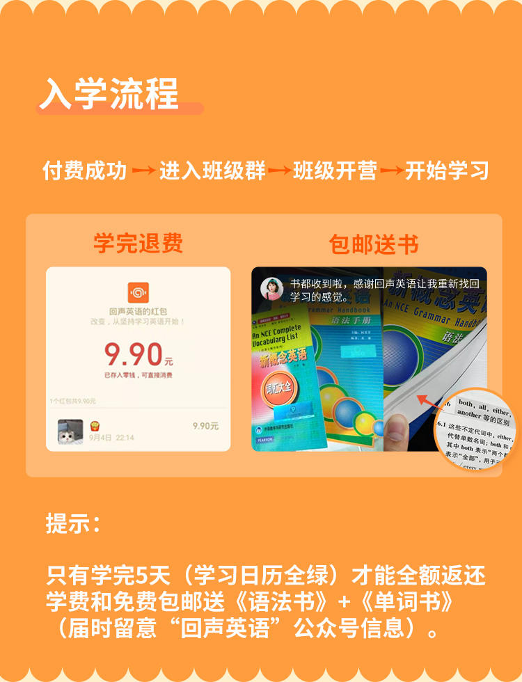完课后:送价值21.6元的【新概念英语 - 语法手册】+【新概念英语 - 词汇大全】包邮到家哦!